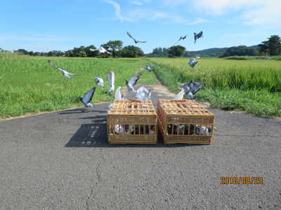 8月23日 晴れ 10km 秋田・象潟 (集団訓練) 32羽参加 30羽帰還